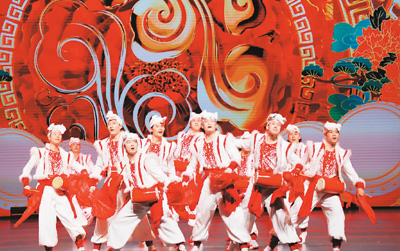 “四海同春”港澳团演员正在表演群舞《欢庆秧歌》。
