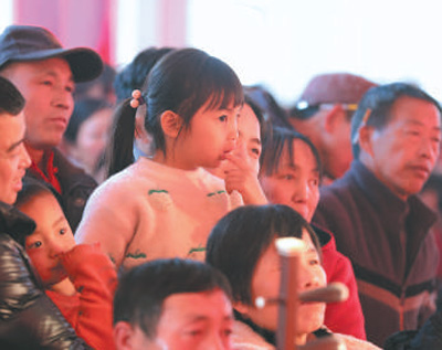 “泥潭人怎么能没听过高腔,幸亏有了‘村晚’,让孩子也可以现场感受一下传统艺术的魅力。”村民陈洋林常年在外工作,今年春节,特意带着女儿回到老家。“好听!”这是小姑娘第一次现场听到岳西高腔,高兴得手舞足蹈。
