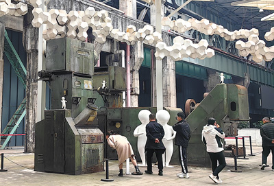 重庆工业博物馆外的游客。