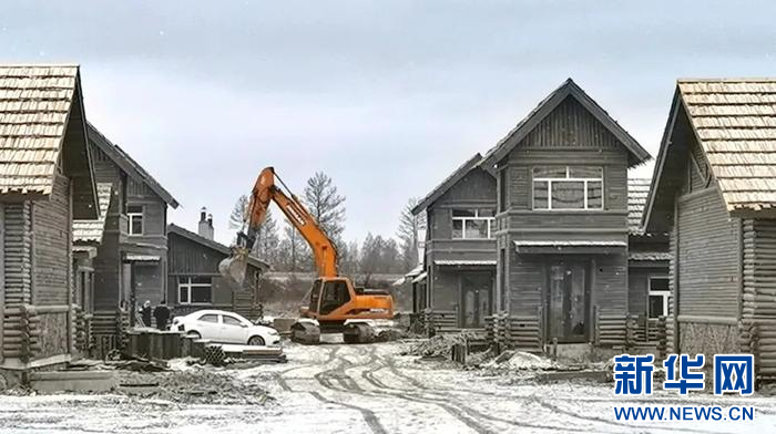 2023年11月17日,在根河市中国冷极村建设项目施工现场,推土车、吊车、运输车等机械高速运转,机器轰鸣声不绝于耳,施工人员正争分夺秒地赶进度、保工期。