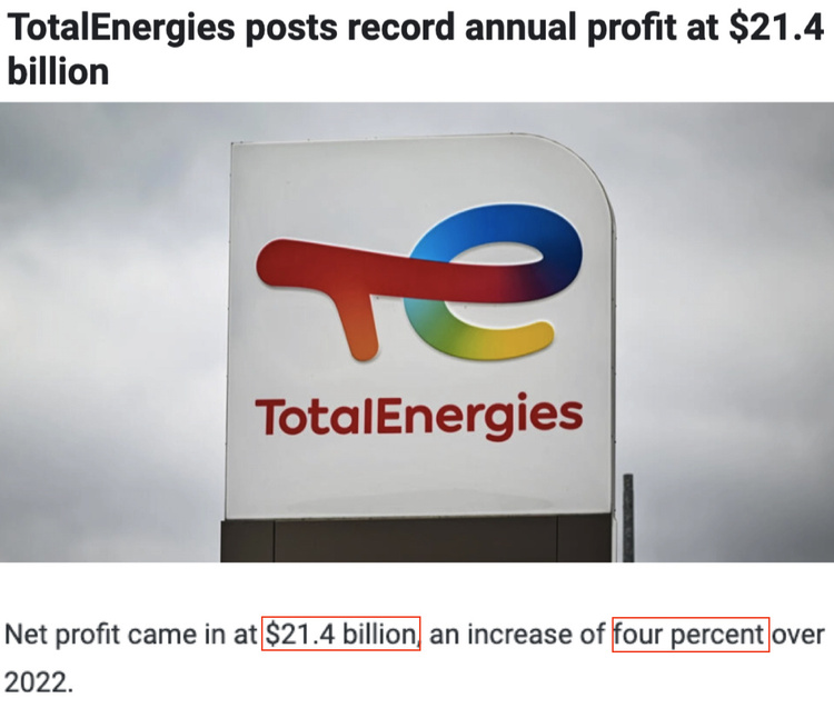 △法国24电视台网站:法国道达尔能源公司2023年净利润比2022年增长4%,达到214亿美元,创下新纪录。