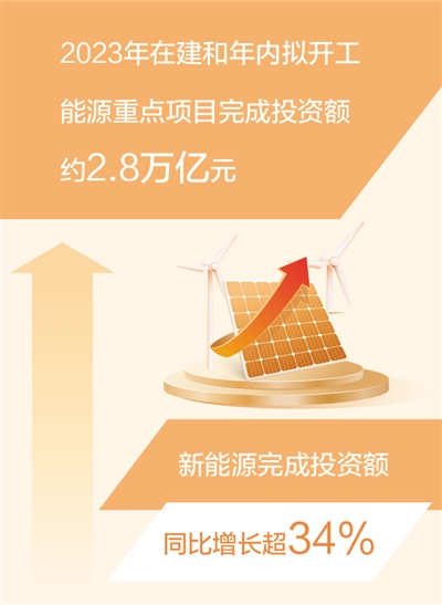 人民日报北京2月22日电(记者丁怡婷)记者近日从国家能源局获悉:2023年,我国能源投资保持快速增长,据监测,全国在建和年内拟开工能源重点项目完成投资额约2.8万亿元。分类别看,常规项目和新业态项目完成投资额同比分别增长16%和152.8%。分地区看,东部、中部、西部地区完成投资额同比分别增长28.5%、13.6%、22.5%。
