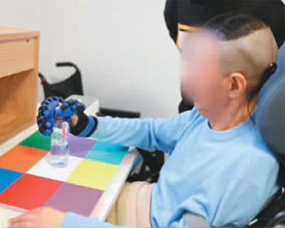 老杨用戴有气动手套的右手稳稳握住水杯,拿起,喝水,再放下水杯。这个普通人习以为常的动作,在老杨身上却是“奇迹”——老杨因车祸四肢瘫痪且已卧床14年!