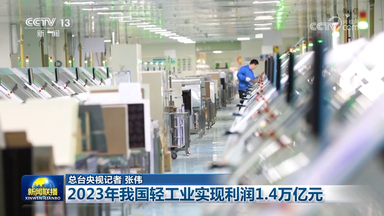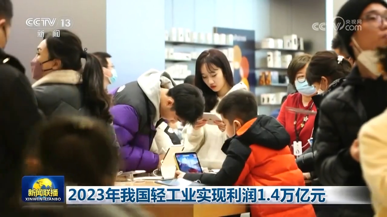 央视网消息(新闻联播):中国轻工业联合会发布数据显示,2023年我国轻工业生产持续回升,市场稳步复苏,新动能行业较快增长,实现营业收入22.2万亿元,实现利润1.4万亿元,同比增长3.8%。