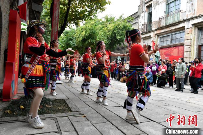 传统民俗活动在古色古香的古厝里上演,前来观看的市民、游客络绎不绝。台湾中华少数民族艺术文创促进会理事长朱王碧玉带着十余位台湾少数民族姑娘在活动上载歌载舞,引得众多市民、游客围观。“希望能够更好地传承中华优秀传统文化。”朱王碧玉如是说道。