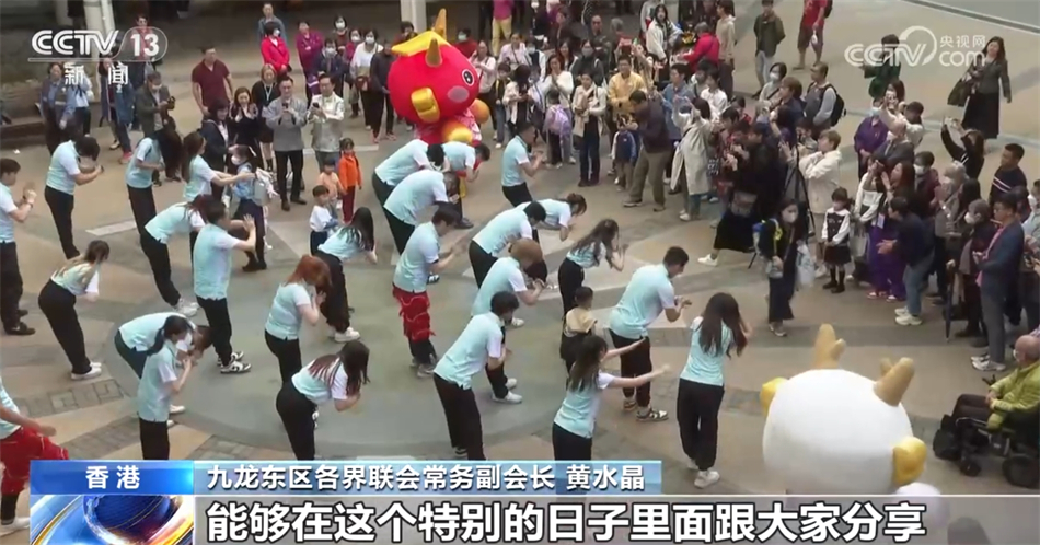 九龙东区各界联会常务副会长黄水晶表示:“我们觉得很有意义,香港的年轻人用努力、汗水能够在这个特别的日子里跟大家分享,用他们的热情把这个开心传播出去。”