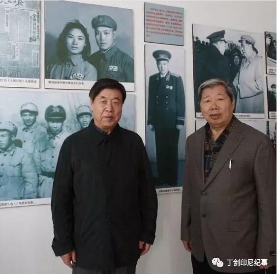 两位已退休的八路军后代,在米家务烈士陵园刘秉彦事迹展览室合影留念。背后墙上陈列着刘秉彦将军年轻时的照片。
