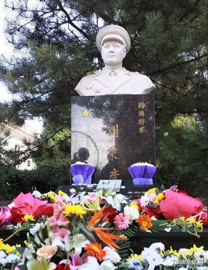 献花陪伴的刘秉彦将军塑像。