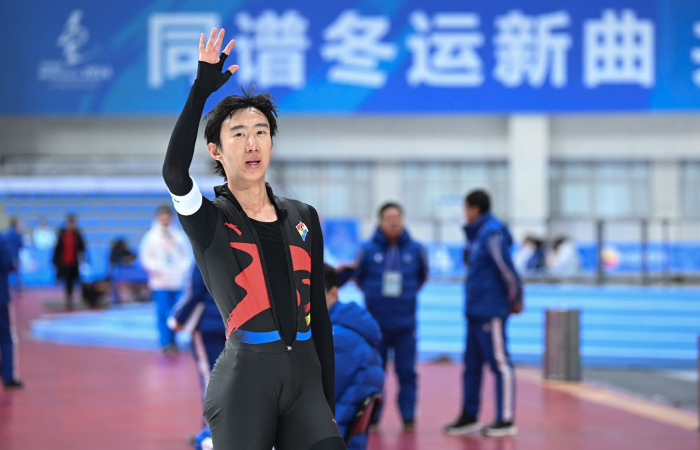 辽宁队选手吴宇在第十四届全国冬季运动会速度滑冰男子10000米A组决赛中夺冠,并打破由他本人保持的全国纪录(2024年1月14日摄)。新华社记者 连振 摄