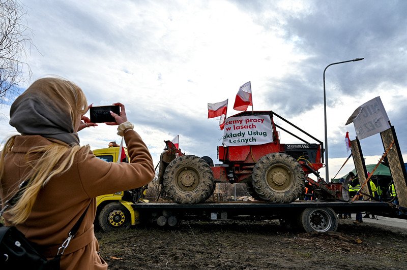 2月22日,波兰农民封锁波乌边境,抗议乌克兰农产品涌入欧盟市场。
