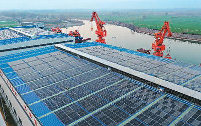 安徽省淮北市孙疃港1.54兆瓦分布式光伏建设项目,是安徽省首个零碳港口建设示范项目。项目以智慧用能平台为支撑,以绿电交易为补充,实现数据互联互通和资源精准调节,推动港口绿色低碳转型。李鑫摄(人民视觉)