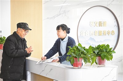 1月25日,在河南省洛阳市孝文街道养老服务中心,工作人员热情接待老年人。张光辉摄(人民图片)