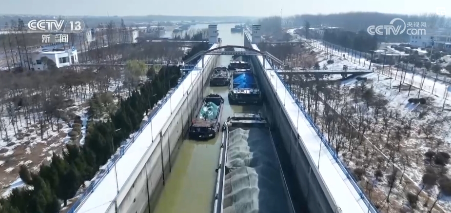 在京杭运河枣庄段的台儿庄船闸,节后出现了少有的繁忙景象。河面上各类船舶往返穿梭,现在一天大约有200多艘货船通过。