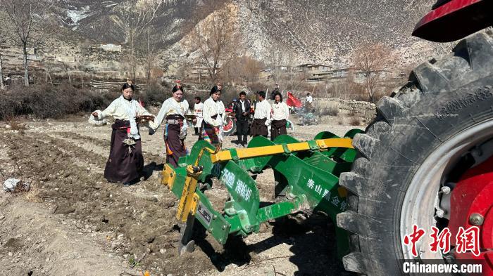 图为身着盛装的村民们开启春耕。次仁顿珠 摄