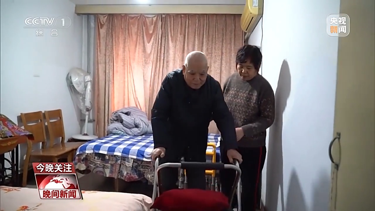 河南郑州88岁的吴兰田老人,就享受到了社区为他量身定制的适老化改造方案,在床边安装护栏、紧急呼叫器,卧室里还安装了这样长长的扶手。