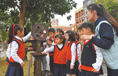2022年3月,九龙坡区教委印发《关于推进中小学集团化办学的意见》,谢家湾金茂小学成为谢家湾教育集团一体化办学成员校。谢家湾金茂小学的前身是重庆建设工业(集团)有限公司子弟学校,约1/3的教师曾是工厂职工。“基于学校情况,我们强调培养学生养成热爱劳动的习惯,形成阳光心态。”谢家湾金茂小学党总支书记杨永财指着校园内摆放的老旧机床说,“重庆建设工业(集团)有限公司发展历史厚重,学校积极挖掘红色资源,给孩子们讲好革命历史,上好思政课。”
