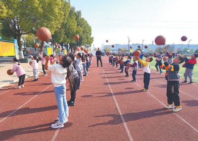陶新明就在县第五小学跟岗学习两年,带回了先进的教学模式和理念。“在教联体支持下,我们校区目前已有两名专职体育老师。我们在课后托管时间开设社团课,为有爱好和特长的学生系统地开设篮球、足球课,引导帮助他们全面发展。”陶新明说。