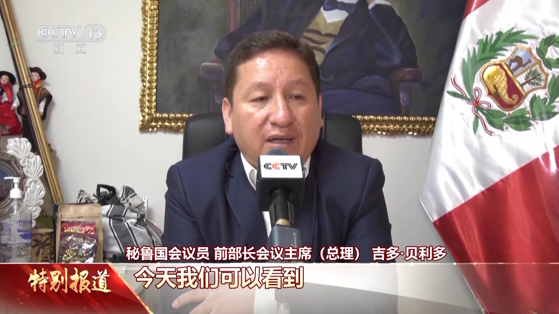 秘鲁国会议员 前部长会议主席(总理) 吉多·贝利多:今天我们可以看到中国与许多国家有经济合作。以秘鲁为例,有许多中国公司参与秘鲁的合作项目。