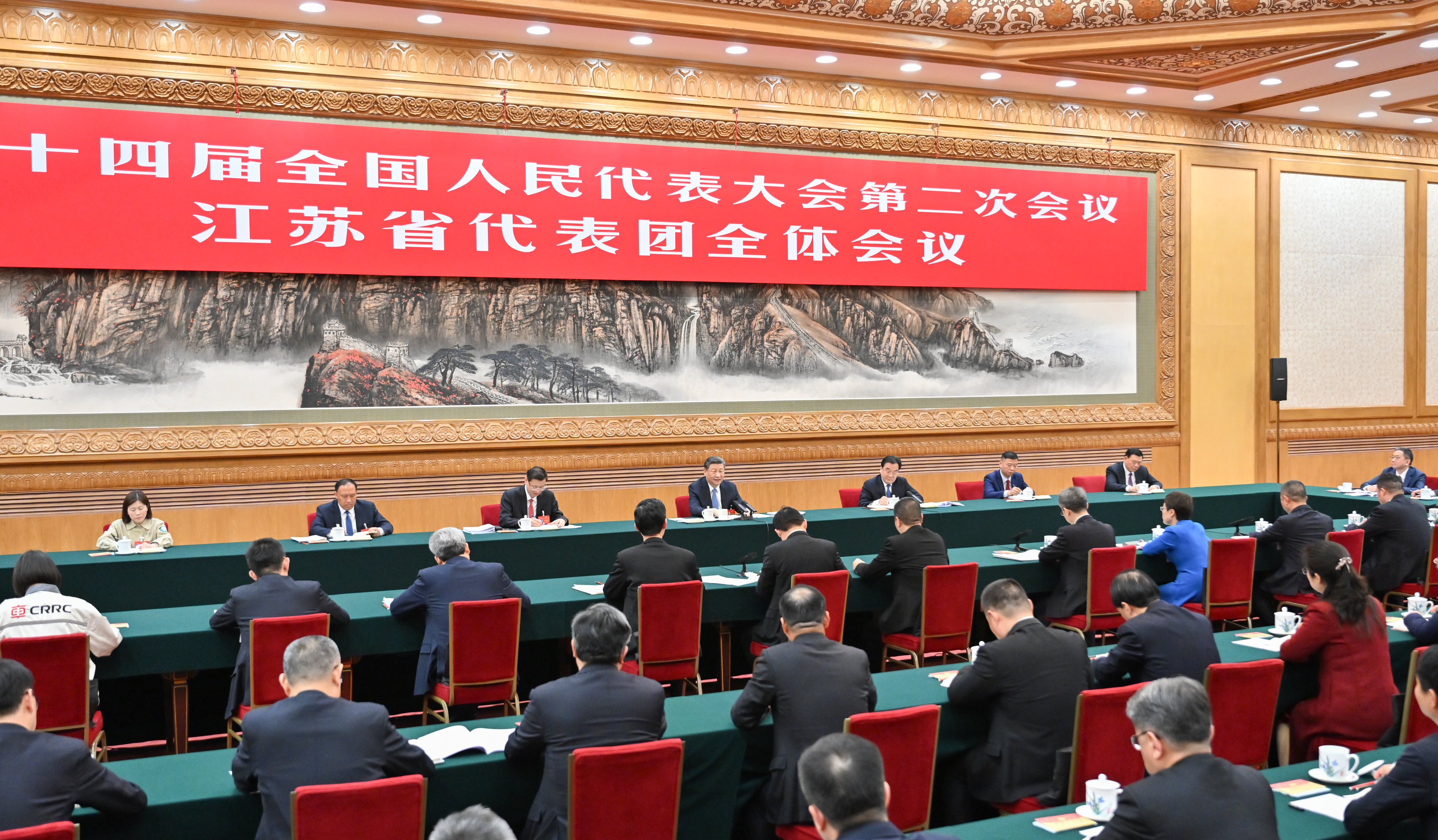 3月5日,中共中央总书记、国家主席、中央军委主席习近平参加他所在的十四届全国人大二次会议江苏代表团审议。新华社记者 岳月伟 摄
