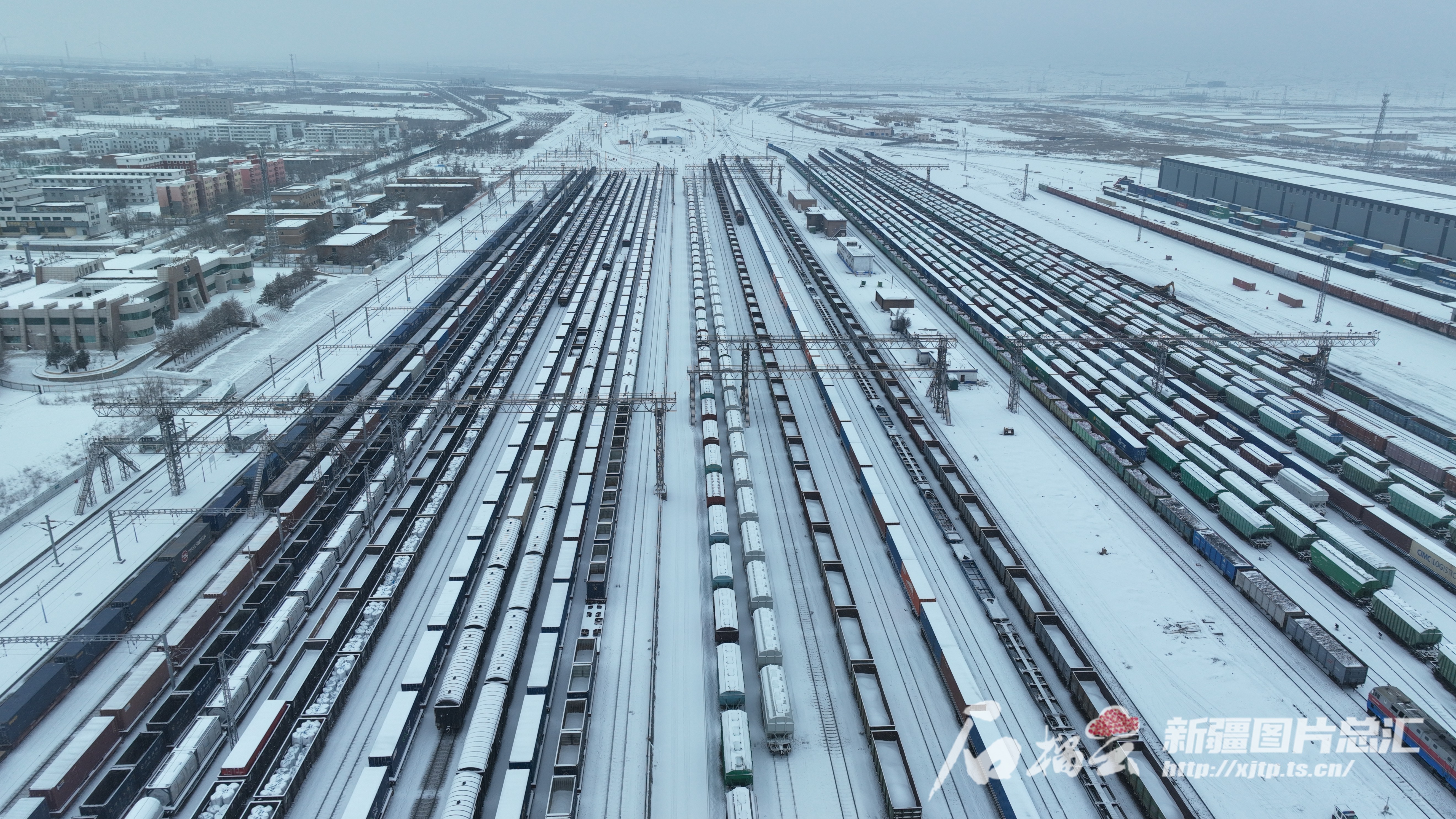 2月21日,阿拉山口站编组场内,中欧班列及其他货运列车集结待发。陈乾摄