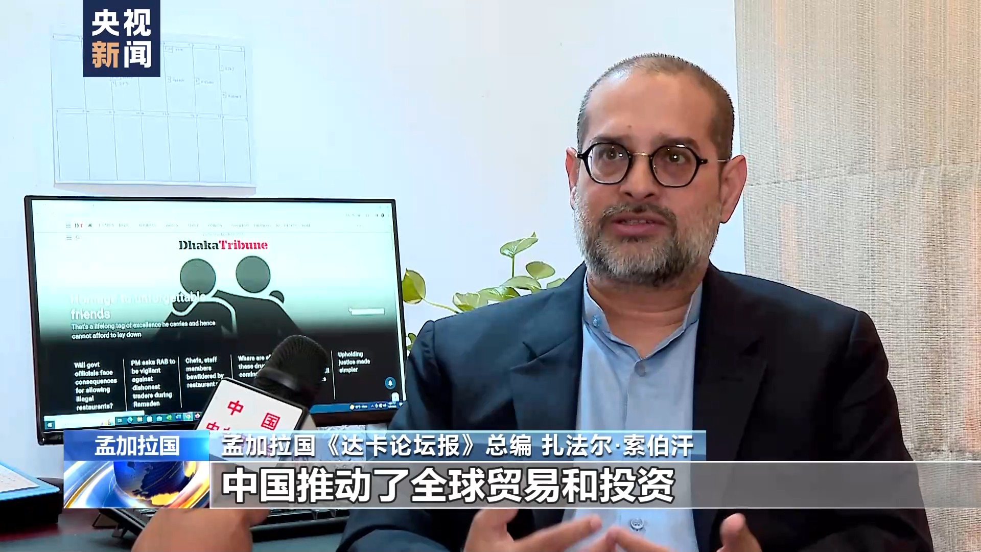 孟加拉国《达卡论坛报》总编 扎法尔·索伯汗:中国在全球发展中扮演着重要角色,中国推动了全球贸易和投资。中国的做法不仅在孟加拉国,而且在所有发展中国家都受到高度赞赏。中国提供的帮助是无条件的,中国希望成为合作伙伴,中国希望分享繁荣和发展。