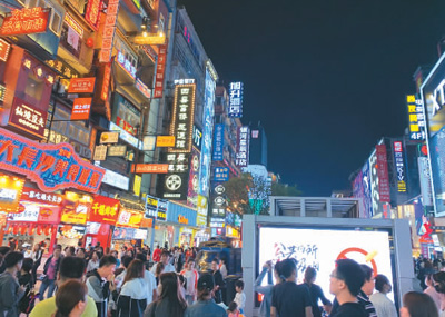 夜幕降临,长沙街头热闹非凡。本报记者 康 朴摄