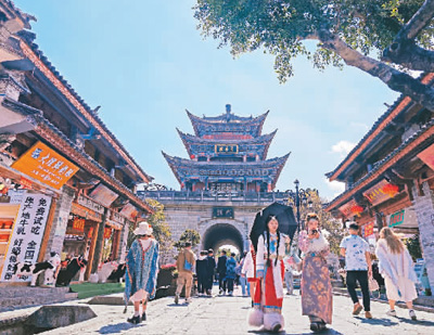 游客在大理古城步行街观光游览。刘德斌摄(人民视觉)