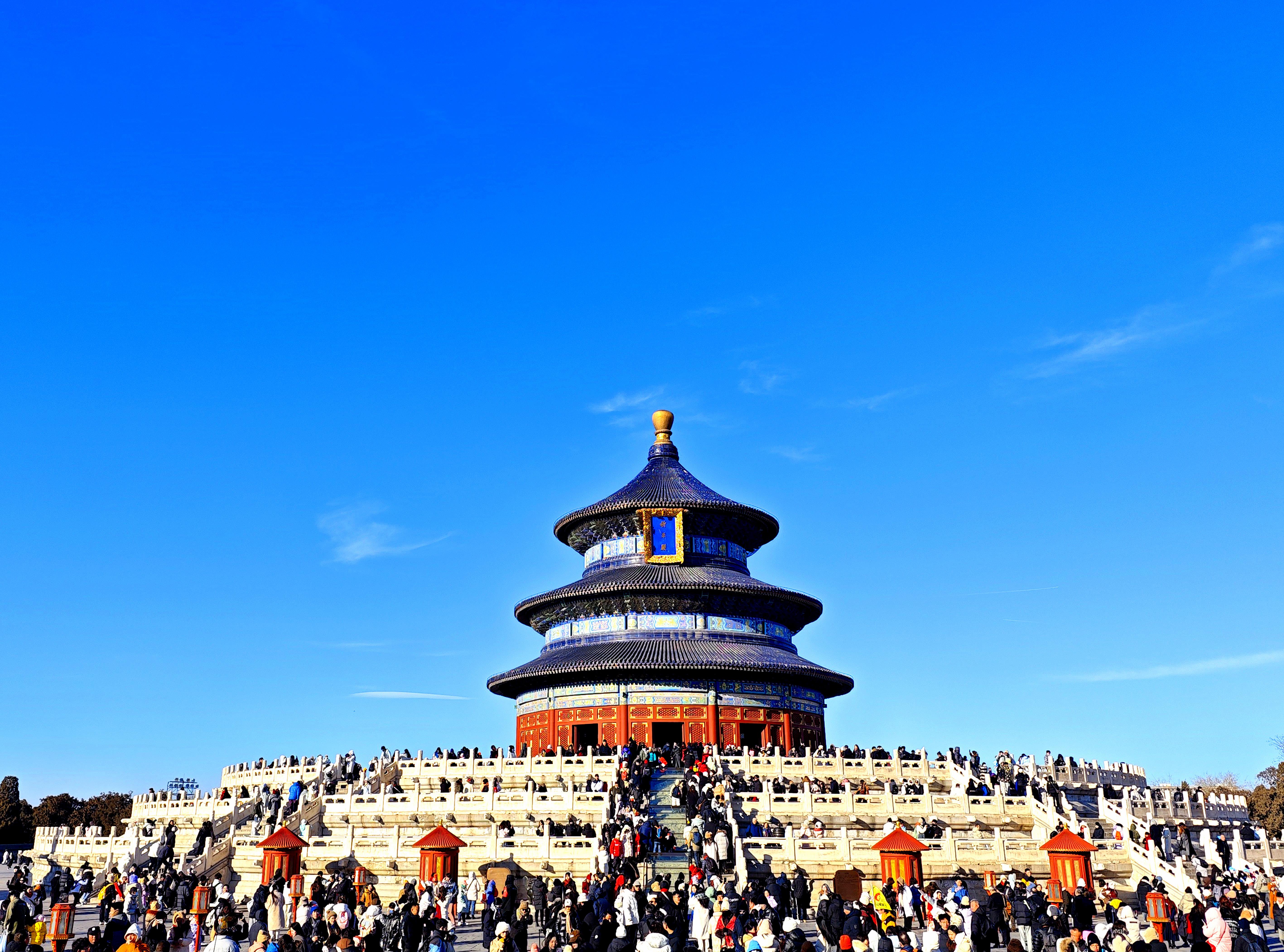 △2024年1月23日,北京持续晴好天气,天坛公园蓝天白云。最新数据显示,北京PM2.5年均浓度连续三年稳定达标,“北京蓝”已成为常态。
