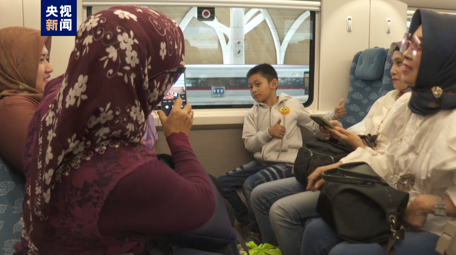△印尼乘客在雅万高铁拍照留念