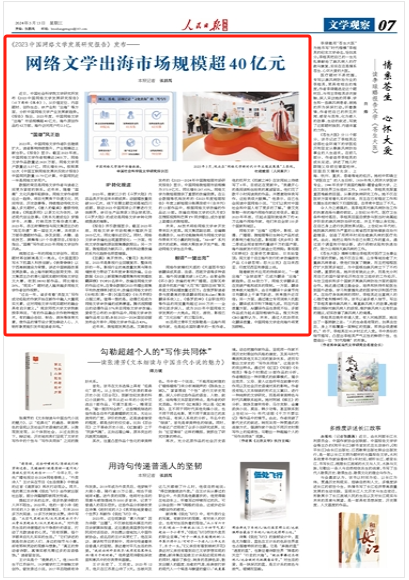 近日,中国社会科学院文学研究所发布《2023中国网络文学发展研究报告》(以下简称《报告》),从价值定位、内容题材、创作生态、IP产业和“出海”等方面,分析中国网络文学产业发展新趋势。《报告》指出,2023年度,中国网络文学“出海”市场规模超40亿元,海外原创作品约62万部,海外访问用户约2.3亿。