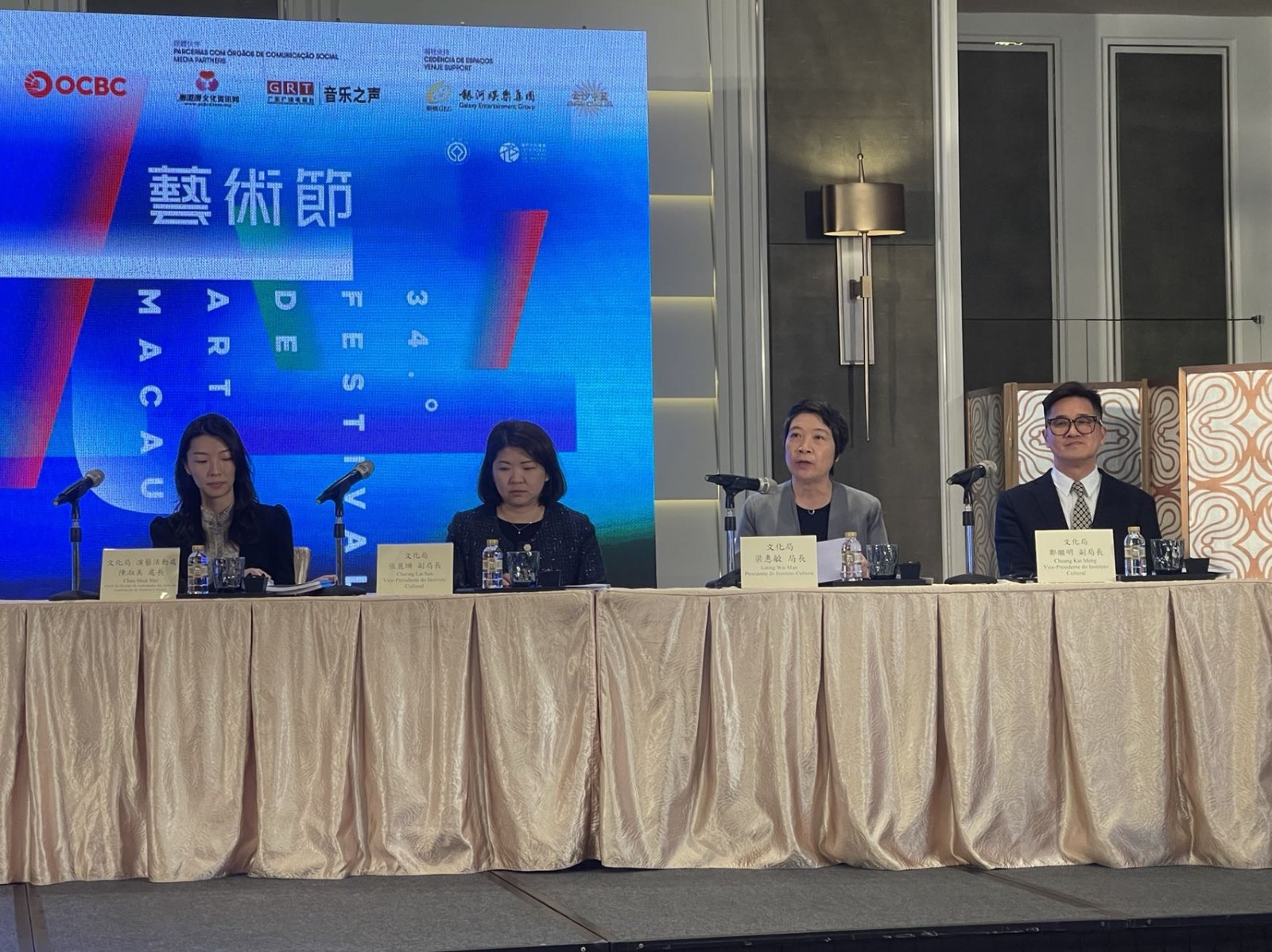 图为澳门文化局局长梁惠敏(右二)致辞。(记者富子梅摄)