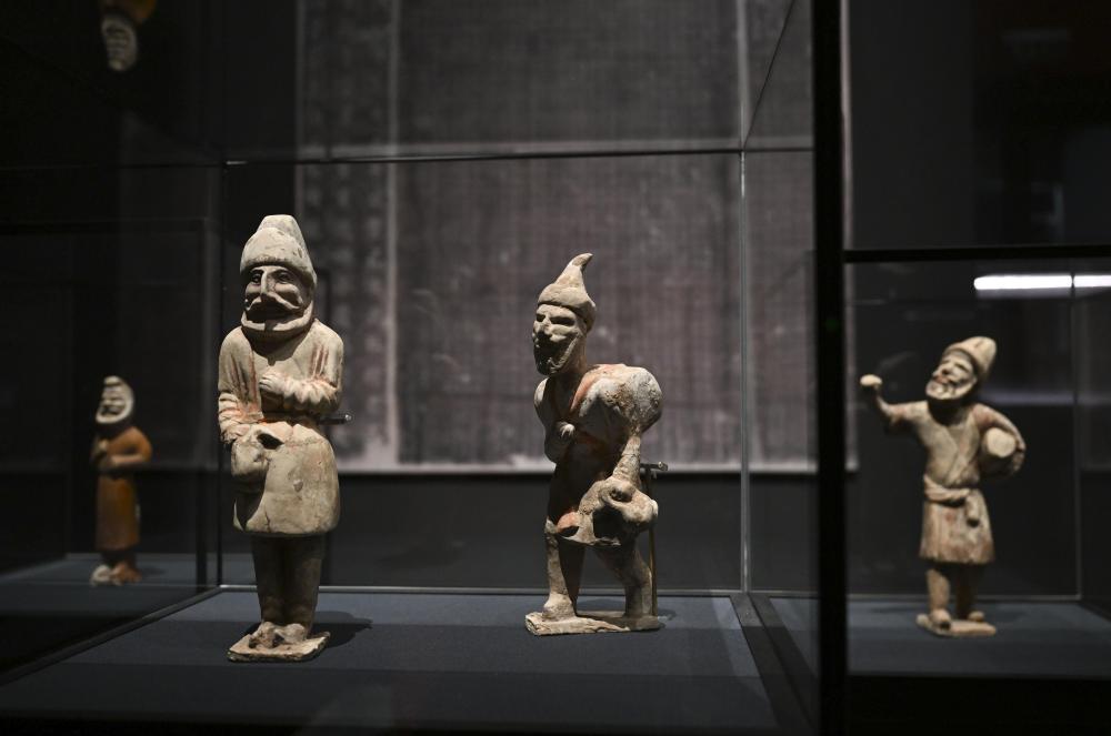 “历史之遇——中国与西亚古代文明交流展”于1月12日至4月11日在故宫午门正殿展厅举行。这是展出的陶彩绘人俑(1月10日摄)。新华社记者金良快摄