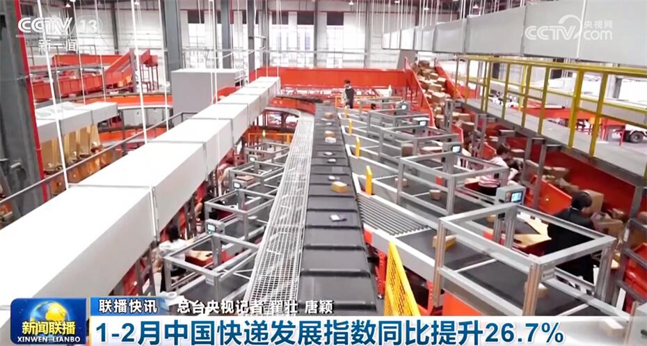 记者从国家邮政局获悉,今年1—2月中国快递发展指数同比提升26.7%。预计1—2月快递业务量同比增速约为23.7%,快递业实现良好开局,市场规模快速增长。