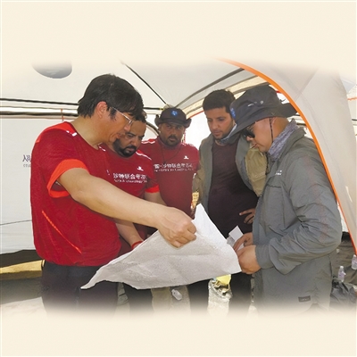 初次踏上西亚大地,自然环境是摆在考古工作者面前的第一道难题。4月的红海东岸已进入酷热的夏季,在骄阳炙烤下,沙漠表面温度可达50摄氏度。身处完全露天且地势略高的遗址现场,考古队员们被晒得黝黑,不少队员出现了中暑症状。“为避免高温和暴晒,我们只能每天早上5点起床出发去工地,尽可能降低自然环境对工作进程的影响。”姜波说。