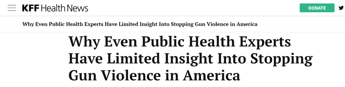 长达四分之一个世纪的资金支持缺口导致了关于枪支暴力对健康影响范围的数据缺乏:谁遭遇了枪击及其原因?暴力的动机是什么?所使用的是什么枪?造成了何种伤害?是否能够通过安全防护措施来减少或预防涉枪自杀率的上升?什么可以有效防止枪击?什么不能防止?
