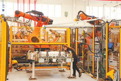 记者看到,在宽敞的车间,工人们分散在包含20多道工序的生产线上,还有60多台工业机器人在精确地执行各项任务。据介绍,雷诺最新R5纯电动车型的电池盒全部在这里生产。电池盒是电动汽车的一个重要部件,通常由铝合金制成,作为动力电池模块的承载体,对电池模块的安全工作和防护起着关键作用。它需要精密的制造工艺和严格的质量控制。车间里的两条自动化生产线从中国整套进口,年产能达30万套。