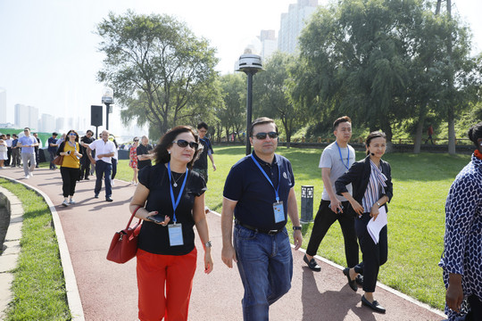 19日早晨,驻华使节们就来到这里,踩着木栈道在江边漫步,江中的喷泉在阳光的照耀下,映射出一道彩虹,使人心旷神怡。