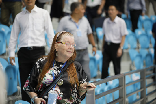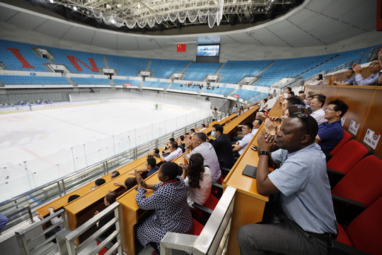 尽管时值夏天,但在吉林市冰上运动中心,冰球队员仍在抓紧训练。为迎接远道而来的驻外使节们,少年冰球队还准备了一场表演赛。