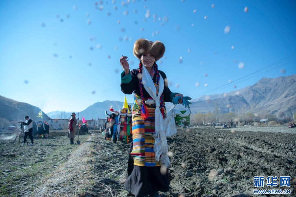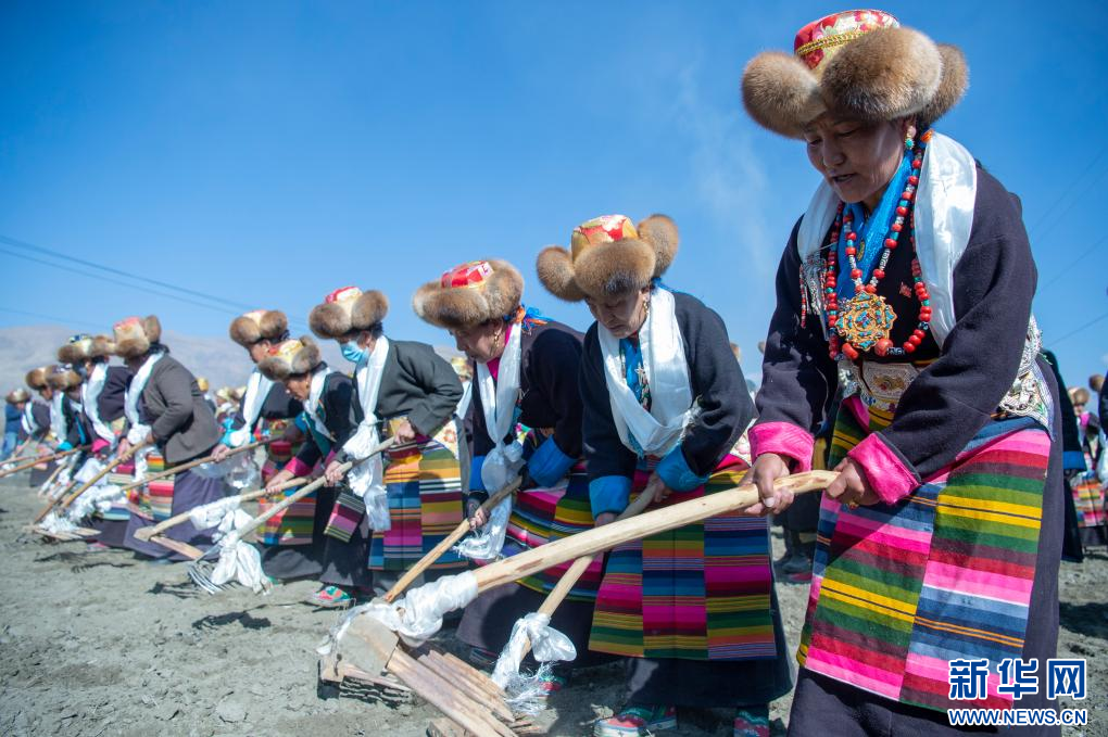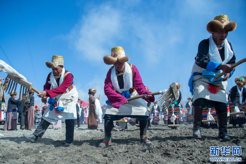 当日,西藏多地举行春耕仪式。西藏山南市乃东区昌珠镇克松社区居民把装扮一新的拖拉机开到农田里,人们身着盛装齐聚田野,春耕仪式在古老的《春耕之歌》悠扬旋律中举行。