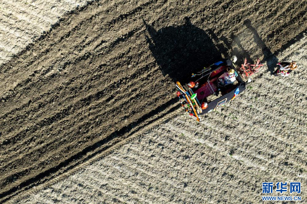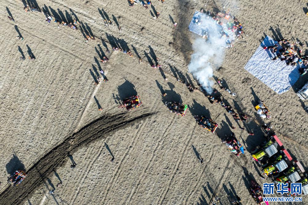 3月16日,克松社区居民在进行春耕仪式(无人机照片)。新华网 旦增努布 摄