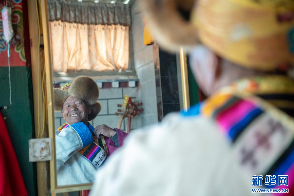 3月16日,克松社区居民格桑多吉在家准备参加春耕仪式。新华网 旦增努布 摄