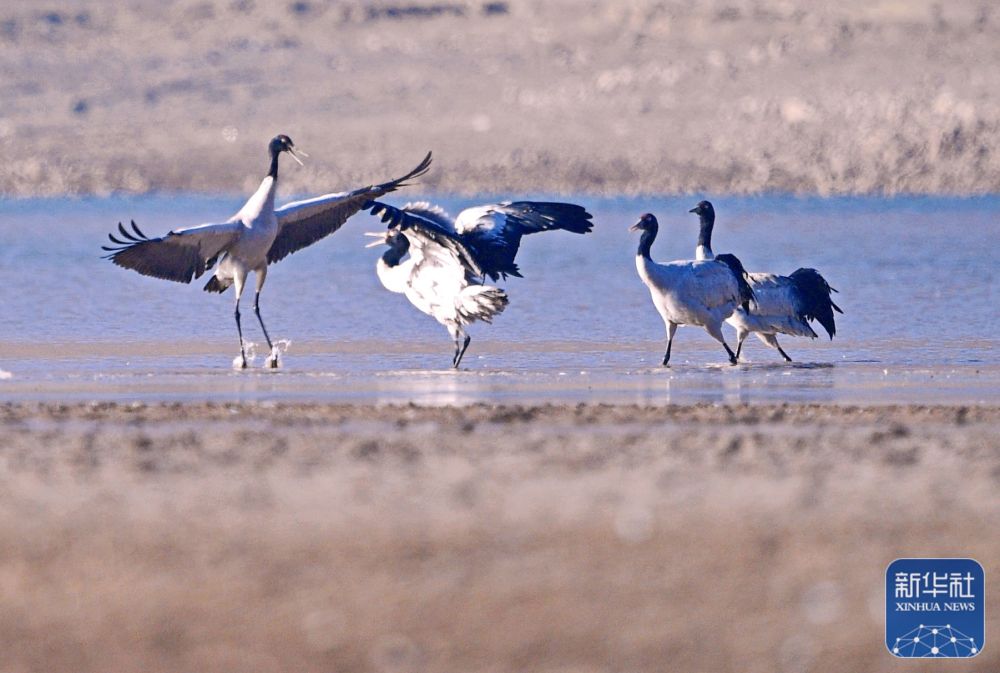 随着气候转暖,位于雅鲁藏布江中游河谷黑颈鹤国家级自然保护区内的西藏拉萨林周县虎头山水库渐渐喧闹起来,在此越冬的黑颈鹤开始春季迁徙,飞往色林错黑颈鹤国家级自然保护区、羌塘国家级自然保护区以及甘肃、青海等地。