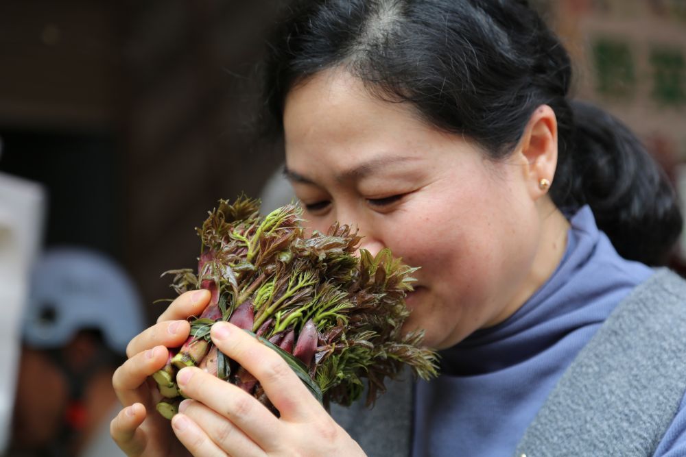 香椿从树上到餐桌,变成香椿炒腊肉。 新华社发(熊平祥 摄)