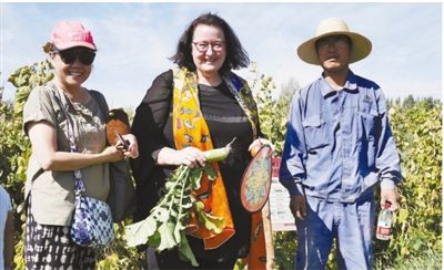 图为傅恩莱(中)在甘肃嘉峪关考察中新合作的农业项目。