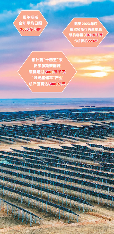 一是“头顶有风光”。作为一类风能资源丰富区和二类太阳能资源丰富区,鄂尔多斯全年平均日照时数达3000多小时;