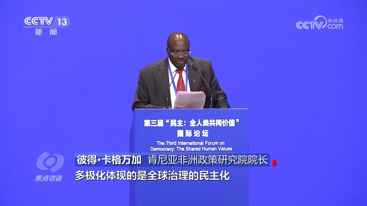 肯尼亚非洲政策研究院院长彼得·卡格万加:“多极化体现的是全球治理的民主化,因为现有全球治理体系存在明显的‘民主赤字’。多极化的世界是要求各国凝聚共识、和谐相处、公平正义、平等相待、相互依存。在多极世界中,国家不分大小强弱,都能参与全球决策。”