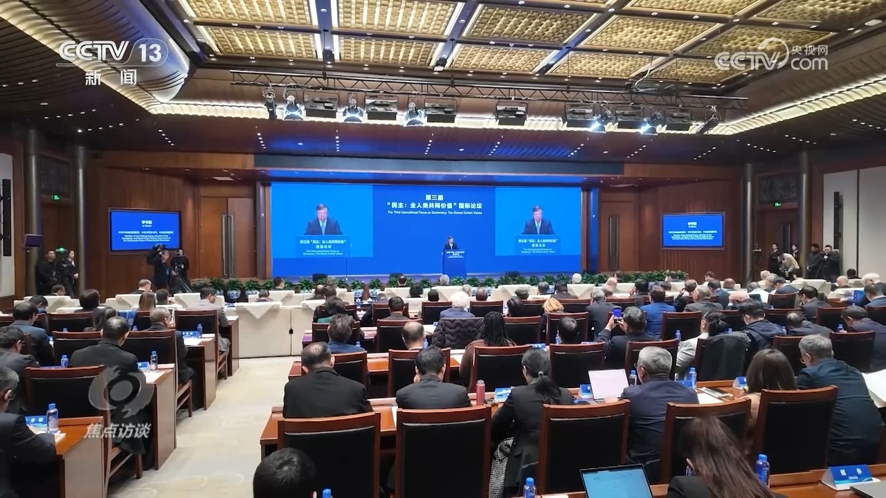 央视网消息(焦点访谈):民主是全人类的共同价值,是中国共产党和中国人民始终不渝坚持的重要理念。党的十八大以来,习近平总书记提出全过程人民民主重大理念,在世界文明的百花园里,中国民主之花绚丽绽放,拓展了人类政治文明的新视野。第三届“民主:全人类共同价值”国际论坛3月20日在北京举办,来自多个国家、地区和国际组织的200余名嘉宾围绕多个与民主有关的议题展开讨论,共商民主真谛和互鉴之道。