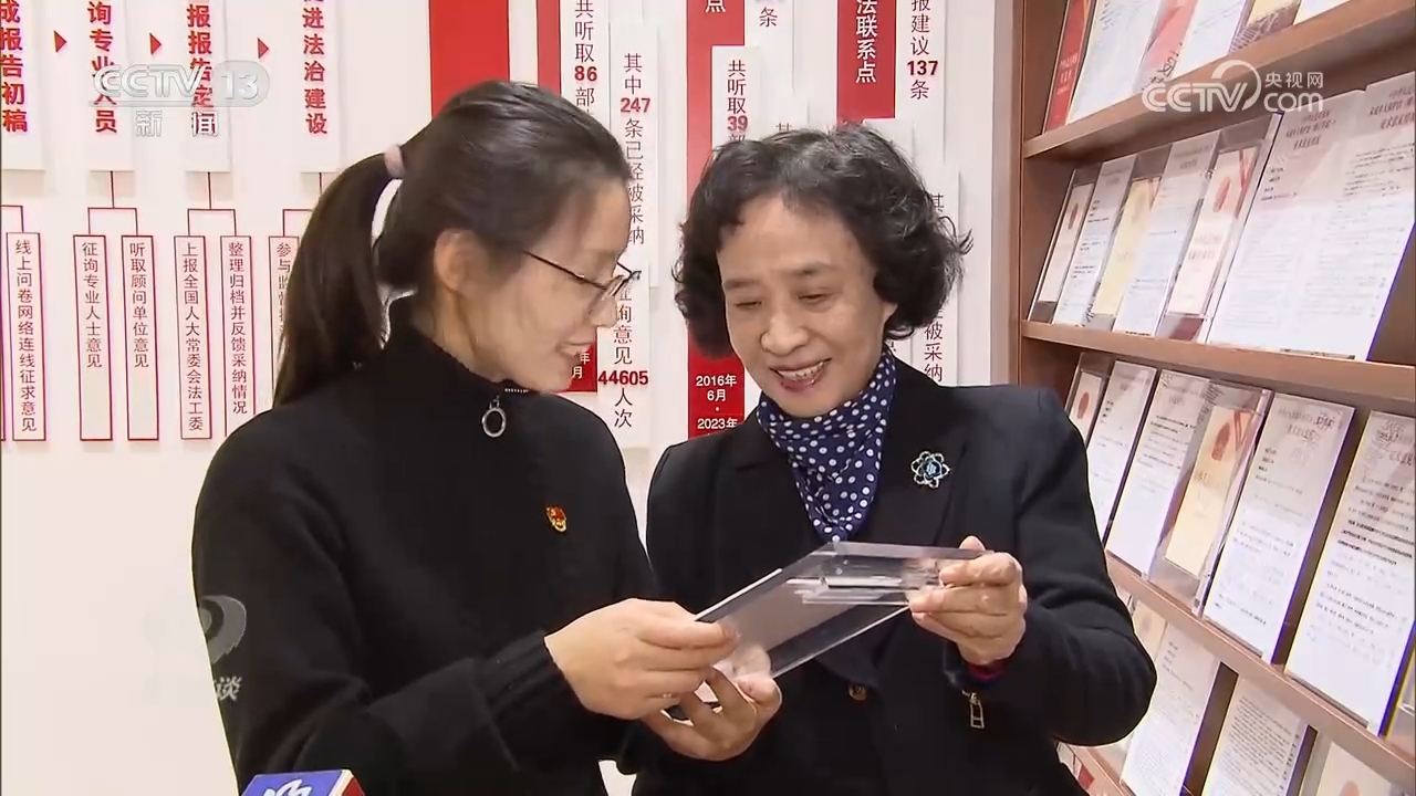 一年一度的全国两会,是全过程人民民主的生动体现。全国6500多个基层立法联系点,为公民参与各项立法搭建“直通车”。2015年7月,虹桥街道成为全国第一个设在街道的基层立法联系点。2019年11月,习近平总书记在这里考察时,首次提出“全过程人民民主”的重要论述。法条墙实时更新陈列的,正是在这里征询过的法律及法条说明。立法信息员郅成华就爱国主义教育法提出的一条建议被采纳,令她倍感欣慰。