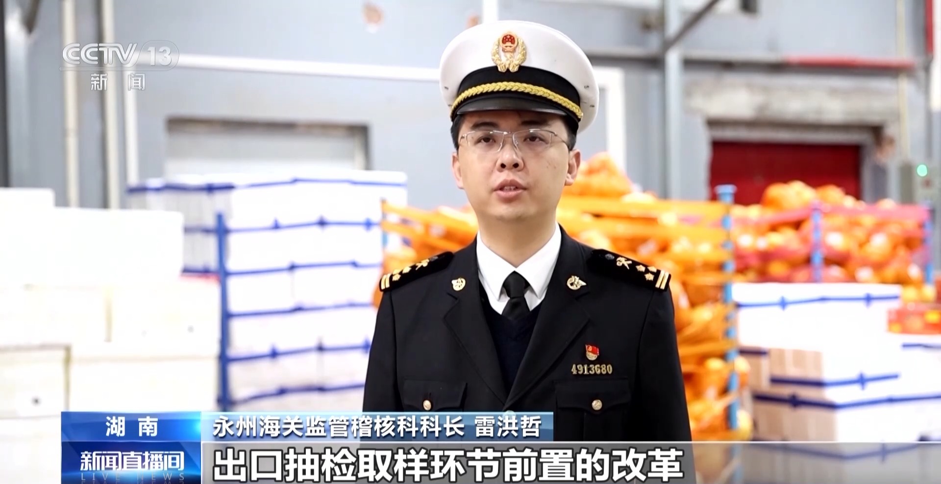 永州海关监管稽核科科长 雷洪哲:出口抽检取样环节前置的改革,将出口检验检疫申报时的监管前移到生产环节,突出过程管控。出口蔬菜不需要在通关环节抽样检测,海关根据生产时的监管评定结果快速放行,可压缩通关时间80%。
