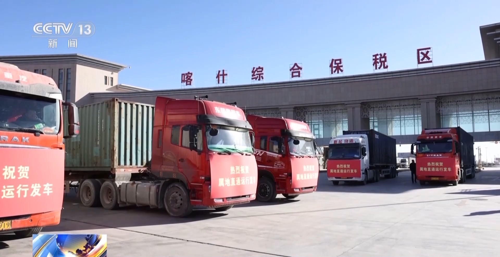 近日,一批便利化通关措施在多地陆续实施,推动进出口货物通关效能提升。在喀什海关关员的监管下,10辆满载百货、日用品、服装的海关监管车辆,分别前往吐尔尕特、伊尔克什坦、卡拉苏口岸国门一线,标志着喀什地区“属地直通”模式落地。